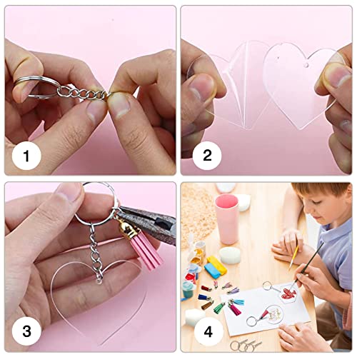 ❀ Kit Anelli Portachiavi Acrilico -- Riceverete 20 anelli portachiavi con catena, 20 ciondoli a nappe, 20 plotter in acrilico a forma di cuore, 40 anelli pieghevoli, 40 occhi a vite, per un totale di 140 pezzi, una varietà di abbinamenti, è possibile creare secondo le proprie preferenze