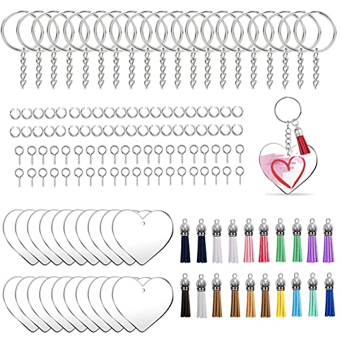 140 Pezzi Anelli Portachiavi Acrilico Nappa Set Inclusi Cuore Forma in Acrilico Vuoti Nappe Pendenti Anello di Salto Anelli avec Catena Perni a Vite per Anello Portachiavi Fai Da Te