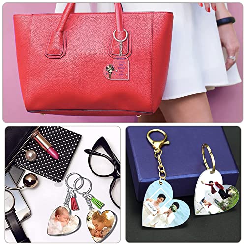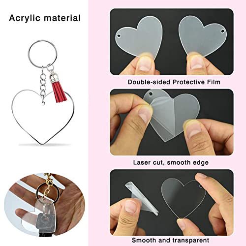 ❀ Ampia Applicazione -- è possibile disegnare, incidere o incollare i vostri adesivi preferiti, foto di voi stessi o della vostra famiglia su questi portachiavi a forma di cuore. Questi pannelli acrilici trasparenti sono adatti per la produzione di portachiavi, cerniere, ciondoli per zaini, decorazioni, etichette regalo, ciondoli, souvenir e molti altri progetti di bricolage