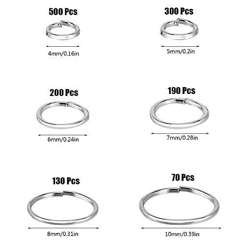 Pacchetto Compreso: Questo pacchetto include anelli di salto di 6 dimensioni, 4 mm, 5 mm, 6 mm, 7 mm, 8 mm, 10 mm, per un totale di circa 1390 anelli di salto, per soddisfare le tue esigenze di creazione di gioielli.