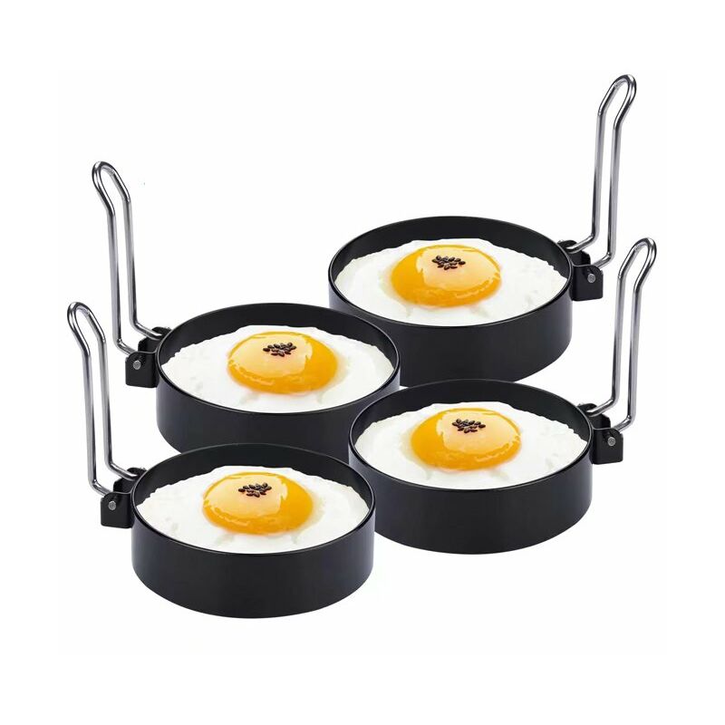 Materiale premium : L'anello per uova è completamente realizzato in acciaio inossidabile per uso alimentare dentro e fuori. L'anello rotondo dell'uovo può resistere a qualsiasi temperatura ed è dimensionalmente stabile. Non è tossico anche ad alte temperature! Facile da usare : Solleva la maniglia dello stampo per uova e posiziona l'anello dell'uovo sulla padella. Ungere la padella e versare l'uovo in questo anello. Quindi aspetta solo che si formi l'uovo rotondo. Con questo stampo per uova puoi cucinare uova tenere e lisce. Esplora la tua creatività il più possibile! Risparmio di tempo e praticità : L'angolazione del manico pieghevole è regolabile, evita di scottarti le mani. L'anello di cottura ti aiuta a cucinare deliziose uova in modo facile e veloce, con meno uova che colano, e a mantenere le uova rotonde.4 anelli per uova con una spazzola in silicone e una spatola in silicone (per cucinare), ti aiutano a cuocere 4 pezzi di uovo fritto allo stesso tempo tempo, risparmiando tempo