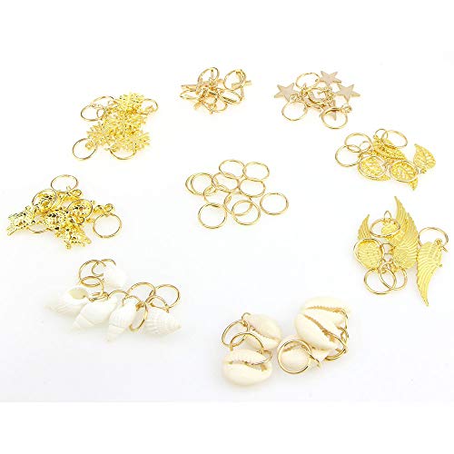 50 Pezzi Anelli a Treccia di Capelli Bobina dei Capelli Metallo Polsini per Capelli Perle Intrecciate di Capelli Stella Ala Anelli Pendenti,Ciondolo a Forma di Forcina (D'oro)
