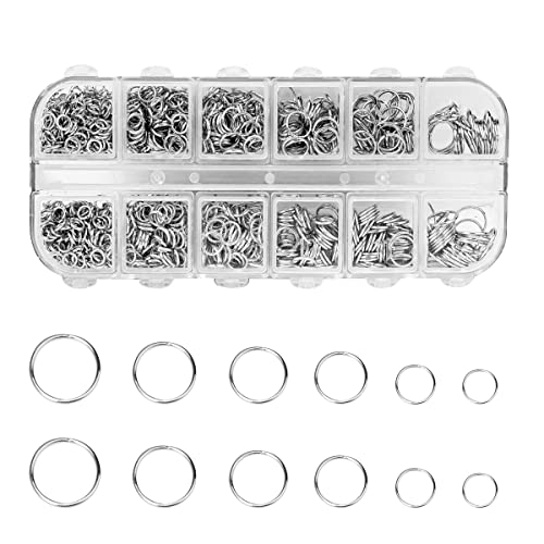 1200 Pezzi Anellini per Bigiotteria, Anelli Aperti di Salto, 6 Dimensioni (4/5/ 6/7/ 8/10mm) Anelli di Salto Metallo con Scatola di Plastica Chiusa, per Fai da Te Collane Braccialetti Gioielli