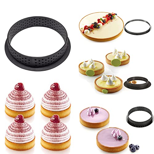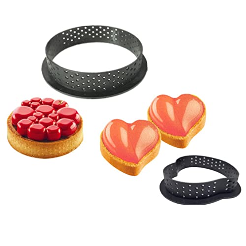 8 Pezzi Anello Crostata Forato, Forma Circolare Anello e Utensili, Ring Microforati Pasticceria per Mousse, Adatto per Dessert, Mousse Cake(A forma di Cuore. Tondo)