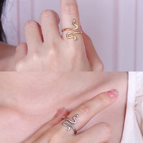 2 Pezzi Anello Serpente Regolabile, Anello Serpente Dorato, Anello Serpente Regolabile, Adatto per l'uso Come Regalo o da Indossare da Solo(Oro, Argento)