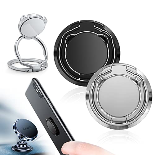 2 Pezzi Anello Supporto Cellulare,Anello Supporto Smartphone,Rotazione a 360°,Può Essere Utilizzato in Combinazione con il Supporto Magnetico per Telefono Auto (nero + argento)