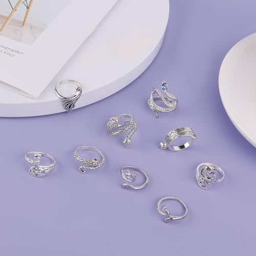 9 Pezzi Anello per Uncinetto, Guida Filato Regolabile Porta Dito Design Serpente Gatto Ditale per Maglieria Anello di Tensione per Quilting Artigianato Strumenti Maglieria Mano Fai da Te