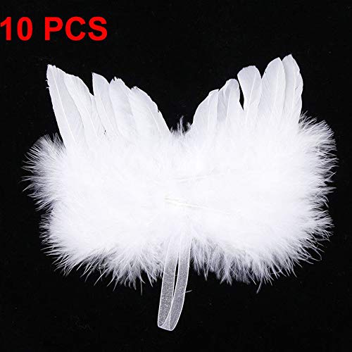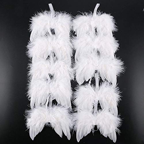 10 pezzi mini angelo custode ali di piume di angelo bianco, albero di Natale appeso ornamento per decorazioni per feste e matrimoni (White, 20x15cm)
