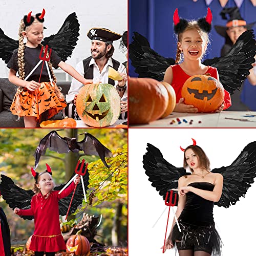 3 Pezzi Ali d Angelo,65 CM Ali d Angelo Decorazione,Ali d Angelo Nere,Ali di Angelo di Piume,Ali Angelo Carnevale,Ali d Angelo Grandi Nere,Corna del Diavolo,Tridente Diavolo(Nero)