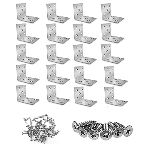 20 pezzi ad Angolo Squadretta, Staffa Angolare Argento, Di L90 Gradi Angolo Staffe di Legno Tavolo(Con 120 viti), Adatto Angolo Del Mobile Angolo Di Montaggio Del Connettore In Legno Zincato