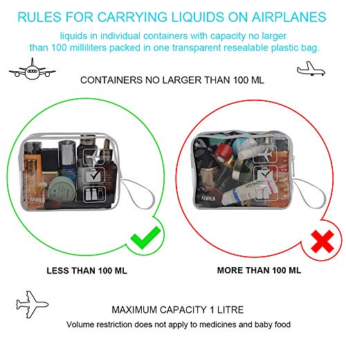 Grande capacità - I sacchetti per articoli da toeletta Anrui hanno una grande capacità, che è più grande del sacchetto medio con cerniera quart per contenere tutti i tuoi articoli inclusi. (Non riempire eccessivamente ~ Se il contenitore del liquido supera i 3,4 once / 100 ml , la sicurezza dell'aeroporto potrebbe non consentire lo porti in aereo.) I pacchi da 2 possono contenere più oggetti.