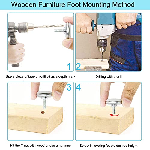 Ampie applicazioni: piedini di livellamento adatti per ufficio o uso domestico, per mobili leggeri con prese filettate, per tavoli, armadi, sedie, scrivanie e altri mobili.