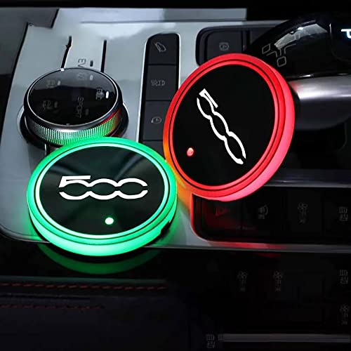 ERTG 2 Pezzi LED Antiscivolo Tappetino sottobicchiere Luminoso, per Fiat 500 500X 500L Interni Atmosphere Light Lamp Sottobicchieri