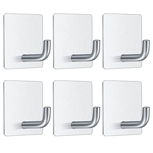 6 Pezzi Appendiabiti, Ganci Adesivi, Ganci Appendiabiti, Porta Appendi Ssciugamani Acciaio Inox per Cucina/Casa/Ufficio/Bagno - Argento