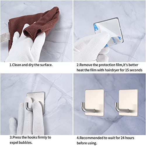 【Il pacchetto include】 Riceverai 6 ganci per asciugamani color argento, il design del gancio ad angolo retto di 90 gradi per evitare che gli oggetti cadano, facili per l'uso quotidiano.