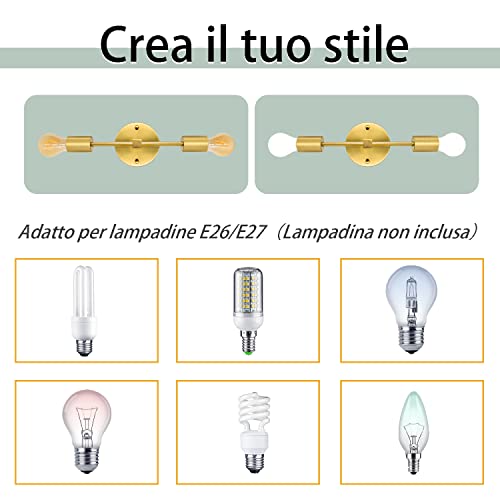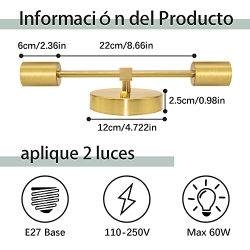 2 Pezzi Applique a Doppia Testa in Oro Spazzolato Lampada da Parete Industriale in Metallo Retrò Applique da Toeletta Luce Specchio Bagno per Camera da Letto Corridoio Portico