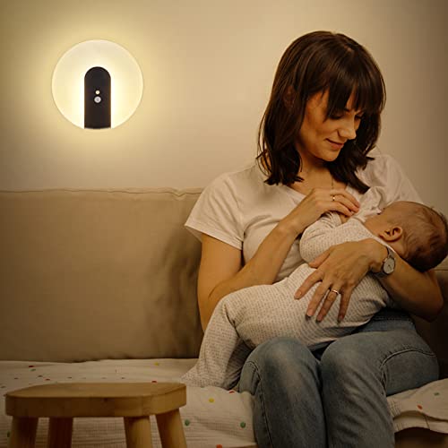 2 Pezzi Applique da Parete Interno con Sensore di Movimento, Lampada da Parete a LED Moderno USB Batteria Ricaricabile Luce LED Notte con Strisce Magnetiche per Corridoio Scale 3000K Bianco Caldo