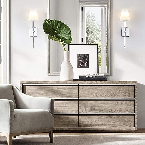 Lampada da parete moderna con paralume in tessuto: l'applique in cromo lucido è perfetta come applique da soggiorno, applique da corridoio, applique da camera da letto o applique da bagno accanto allo specchio, questa lampada da parete con paralume in tessuto aggiunge un aspetto classico a qualsiasi stanza.