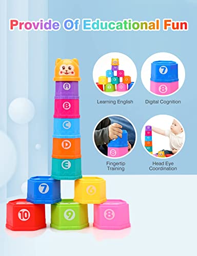 【Giocattoli Educativi Precoci】Impilando le tazze dei blocchi, i bambini possono organizzare i numeri in ordine e alfabeto per formare parole semplici. Imparare modelli geometrici incisi sui blocchi impilabili. Aiuta il bambino a imparare numeri, lettere e colori il prima possibile, allena la reazione e la logica dei bambini.