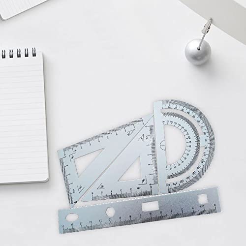 4 pezzi argento matematica geometria strumento lega di alluminio triangolo righello quadrato set, forniture per studenti disegno set compreso goniometro