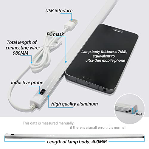 La lampada LED per armadio è di 40 cm con 35 LED, bianco neutro 4000K, potenza 4,5 W, 170 lm. non ricaricabile. La lampada da mobile da 40 cm viene fornita con un cavo di ingresso USB, deve essere configurata con un alimentatore tradizionale da 5V/2A DC (non incluso nella confezione).