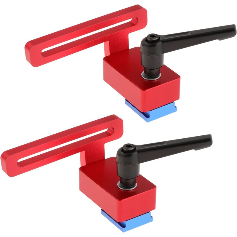 Materiale: il fermo del binario di guida è realizzato in lega di alluminio 6061 di alta qualità. Applicazione: il fermo del binario per obliquo viene utilizzato per posizionare e fissare qualsiasi posizione del tipo 30, adatto per cave a T, T -tracce, dado a T. Riepilogo: struttura semplice, facile da usare, forte forza di serraggio, alta precisione, ampia gamma di applicazioni. Dimensioni totali: circa 10 x 8 x 3 cm / 3,94 x 3,15 x 1, 18 pollici Confezione: include 2 pezzi di fermi per binari per tagli obliqui.
