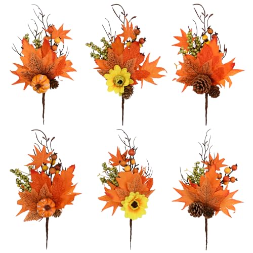 6 Pezzi Artificiale Acero Foglie Bacche Rami Decorazioni Autunno Picks con Zucca Girasole Pigne per il Ringraziamento Harvest Festival Indoor Outdoor Home Ornamenti Autunno Decorazione (Stile B)