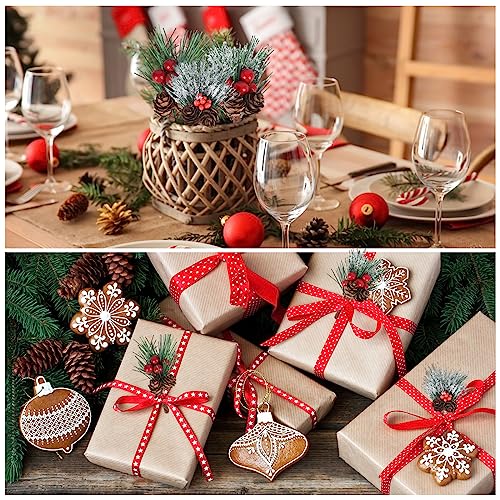 24 Pezzi Artificiale Pino Picks Natale neve Aghi di pino con Bacche Rosse Coni di Pino, Agrifoglio Steli Decor Bouquets per albero di Natale Composizioni floreali Ghirlande Decorazioni