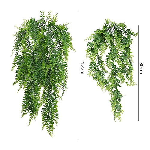 2 Pezzi Artificiali Hanging Piante Finta Boston Piante Vines 122cm Pianta Finta Cadente 80cm Edera Artificiale da Appendere Pianta per Interni Esterni Decorazioni Festa Casa Balcone Giardino