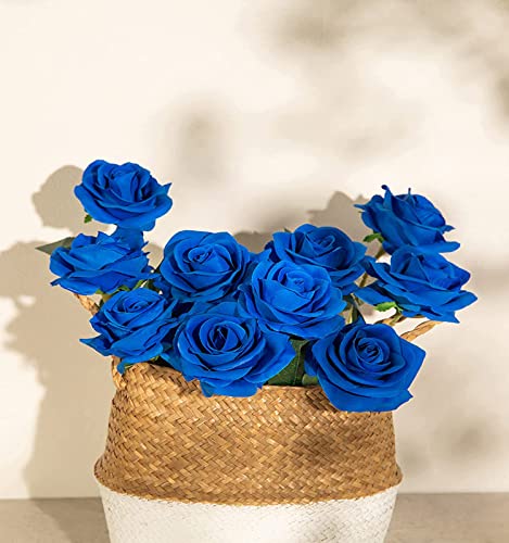 12 pezzi rose artificiali, rosa faux realistica con bouquet di fiori finti decorativi a gambo lungo singolo per la disposizione floreale del matrimonio (blu)
