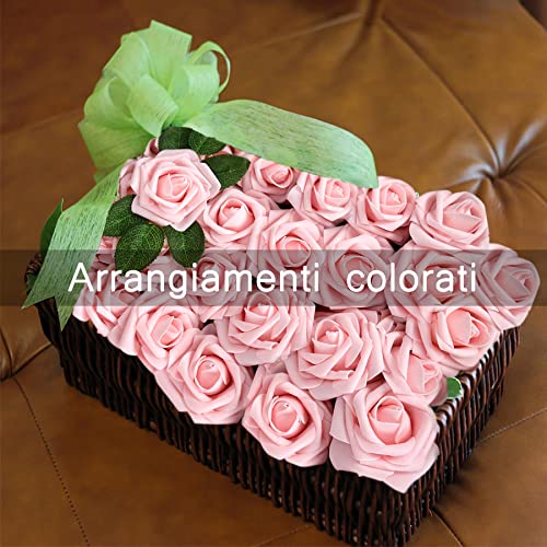 25 Pezzi Rosa Artificiali Rose Schiuma Artificiali con Steli per DIY Nozze Nuziale Mazzo Festa Casa Decorazioni (Rosa Chiaro)