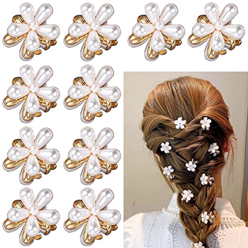10 pezzi di clip per artigli per capelli a fiore, artiglio per capelli con mini perle Mini artiglio per capelli Clip per capelli artificiali dolci per ragazze Accessori per donna...