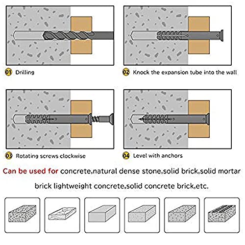 Materiale Premium: Il set di viti autofilettanti a testa svasata è realizzato in acciaio al carbonio di alta qualità Q215. L'ancoraggio è in plastica. Antiruggine, resistenza alla corrosione e all'invecchiamento. Durevole e non facile da arrugginire.