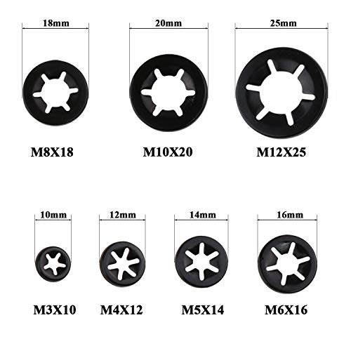 Il pacchetto include: 200 pezzi [7 dimensioni] rondelle blocca denti interne Starlock nere , possono essere utilizzate per una scatola di immagazzinaggio. (Come mostrato nell'immagine). Per soddisfare le esigenze dei clienti, forniamo anche altri modelli di questo prodotto. Sei il benvenuto per l'acquisto e grazie per essere venuto!