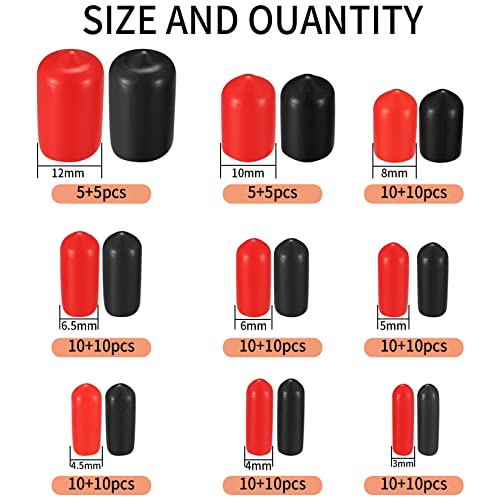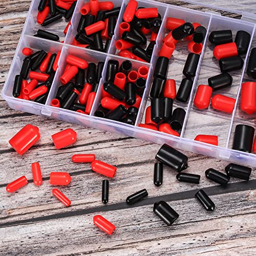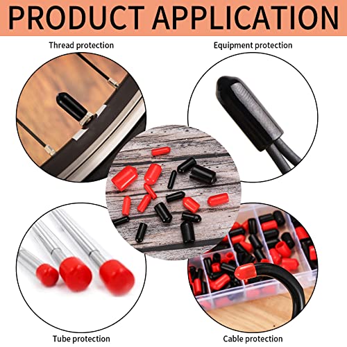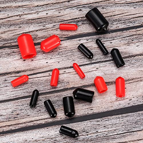 160 Pezzi Set di Assortimento Tappi Terminali in Gomma, Protezione Filettata Tonda in 9 Misure, Tappo Terminale Protettore Filettatura Vite, Copertura in Gomma per Tappo a Vite, Nero/Rosso
