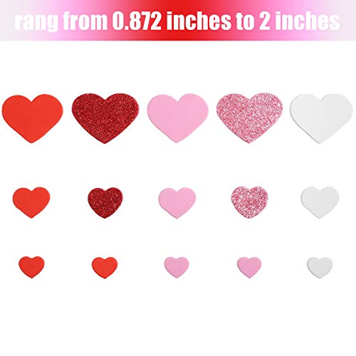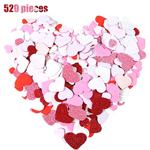 520 Pezzi Assortiti Decalcomanie Adesivi a Forma di Cuore in Schiuma Glitter Adesivi Auto Adesivo Valentine per il Giorno di San Nozze Artigianato, 3 Colori in Vari Taglie