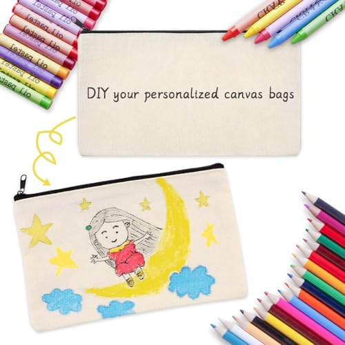 Astuccio in Tela Bianco fai da te Set-Il set include 15 Astuccio Tela Sacchetti con Cerniera,12 pennelli, 4 pagine da colorare. La dimensione della borsa a vela è di 21 x 12 cm,molto adatta per riporre oggetti quotidiani,facile da trasportare o trasportare.