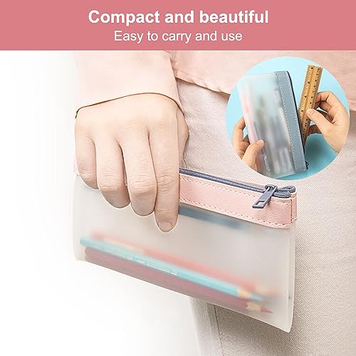 MATERIALE DI ALTA QUALITÀ, DUREVOLE -- Astucci Portamatite Trasparente realizzato in TPU e pelle, morbido e confortevole, di pregevole fattura, impermeabile e antiolio, morbido ed elastico, con angoli arrotondati, non facile da rompere e graffiare, può essere utilizzato per lungo tempo. Dimensioni 19,5*9,5 cm, può contenere 10-15 penne neutre.