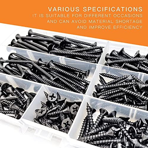 185 Pezzi Viti Autofilettanti Nere, M4 Viti per Legno, Viti Testa a Croce Piatta per Cartongesso, Viti Assortite Acciaio Carbonio per Riparazione Fissaggio - 16mm/20mm/25mm/30mm/40mm/50mm/60mm