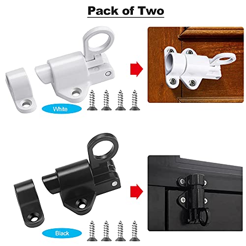 2 Pezzi Automatica Serratura della Porta Bullone a Molla con Viti Serratura di Sicurezza in Lega di Alluminio Blocco Automatico del Rimbalzo per Porte del Cortile Armadietti, Bianco e Nero