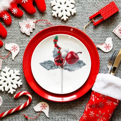 【Bella Decorazione Natalizia】: Caramelle di natale picks set di Natale è composto da campane rosse, caramelle a spirale classiche rosse e bianche, lecca-lecca, pigne naturali, bacche rosse con neve e foglie verdi con neve. Hanno creato insieme un'atmosfera natalizia nella nostra casa, e sarete entusiasti dell'impatto visivo che hanno creato il giorno di Natale