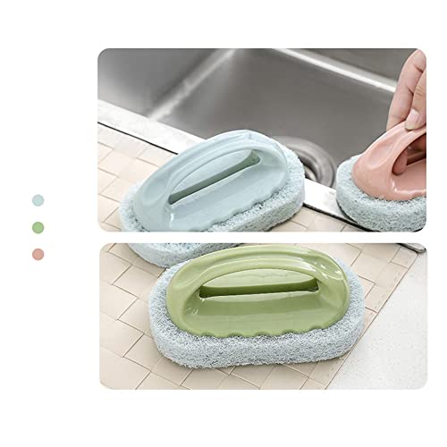 Luou 3 Pezzi Bagno Pulizia Spugna Pennello,Spazzola per la Pulizia con Manico,Facile da Usare,Spugne con Manico in Plastica,Casa Cucina Bagno Vasca Pavimento di Casa Lavori di Casa(3 Colori) (LO00019)