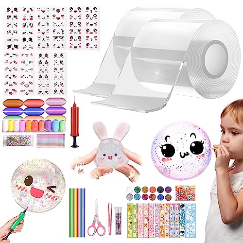 67 Pezzi Set per Bambini, 2 Nano Magic Nastri + 65 Accessori Scifidol Bolle Soffianti, DIY Scaccia Nano Tape, Bubble Kit con pompetta, adesivi di paillettes (Bianco)