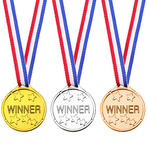 24 Pezzi Bambini Medaglie del Vincitore in Plastica Oro Argento Bronzo Medaglie Premio Vincitore per Festa Premi per Decorazioni