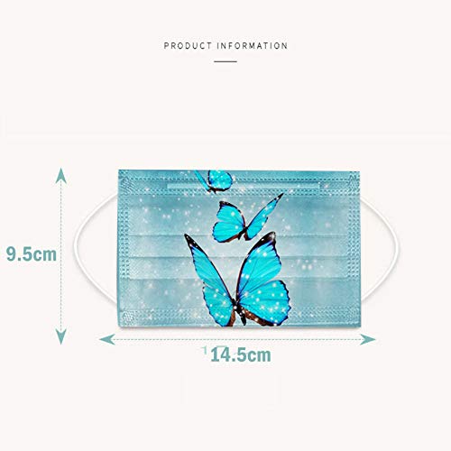 50 Pezzi Bambini Protezione per Mascherinear per Il Viso USA e Getta 3 Strati Stampa Farfalla arcobaleno Tessuto Cotone Antipolvere Visiera Bocca Faccia Adatto Regolabile Disegni Comfort Traspirante