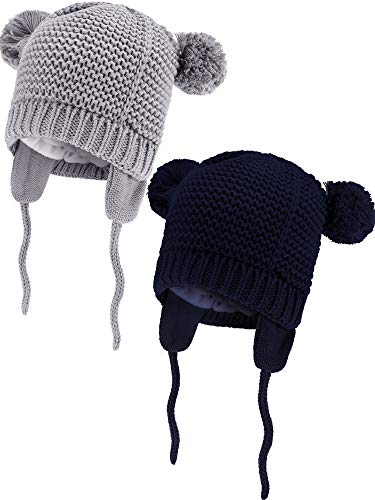 2 Pezzi Bambino Berretto Neonato Cappelli a Maglia in Pelliccia Foderato Animali Forma Berretti con Paraorecchie per Ragazzi e Ragazze Forniture