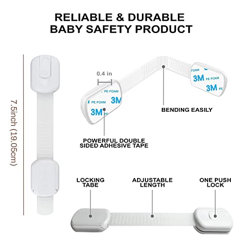 12 Pezzi Bambino Chiusure di Sicurezza, serratura del cassetto, Blocco di sicurezza con regolabile, Nessuna perforazione con adesivo forte, Adatto per porte di frigoriferi,armadi,cassetti,guardaroba