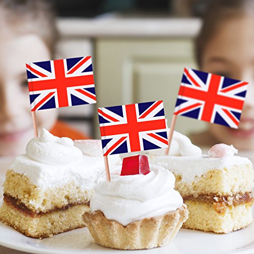 100 Pezzi Bandiera Britannica Stuzzicadenti l'Unione Jack Bandiera Torta Topper per Compleanno Matrimonio Baby Shower Giorno Nazionale