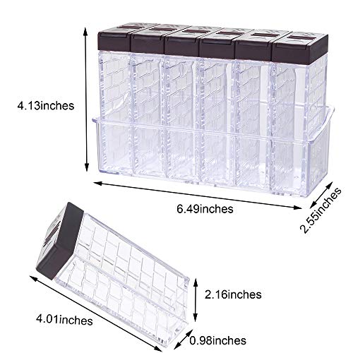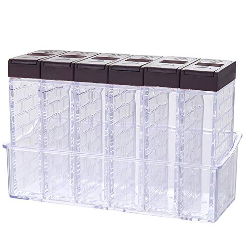 XUBX Set di 6 pezzi Barattoli portaspezie, barattoli di spezie, Barattoli in plastica per spezie, contenitore trasparente per condimenti con vassoio e 2 tipi di fori di uscita, condimento Bagagli