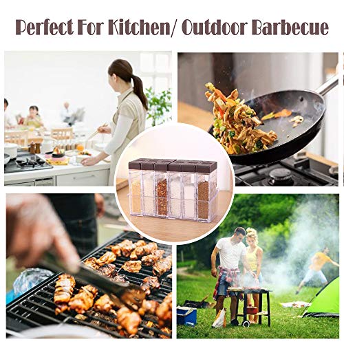 【Multiuso】 Il set porta spezie è perfetto per conservare spezie e polveri di tutti i tipi, come sale, pepe, zucchero, zenzero, cannella, basilico, aglio, ecc. Può essere utilizzato insieme alla base, può anche essere usato da solo. È ideale per cucina o barbecue all'aperto, picnic.